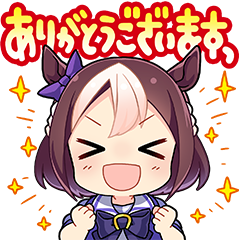 ウマ娘が目をつむって全力でお礼を言っている愛おしいスタンプです。
