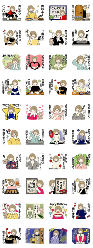 日々、どこかできっと使える便利なスタンプです。よく使う言葉、シーン、定番フレーズと時々使えるものもあり。日常/挨拶/連絡/お誘い/感謝/共感/励まし/家族/友人/敬語