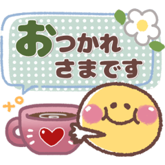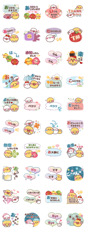日常使いに便利なスタンプです。挨拶/でか文字/ありがとう/ハート/吹き出し/感謝/毎日使える/食べ物/スマイル/見やすい