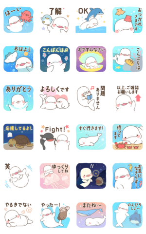 毎日使える、シロイルカと海の生き物のスタンプです♪DECOR より発売