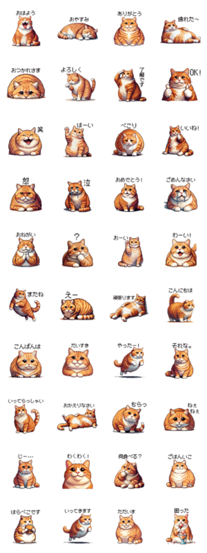 ドット絵 太っちょキジトラ 食べ過ぎ 猫 スタンプ画像一覧