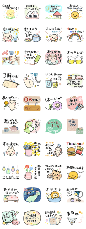 まいにち気軽に使える大人かわいい日常スタンプです。おはよう等、挨拶に使える言葉を敬語中心に詰め込んだセットです♪日常/毎日/大人ガーリー/お返事/可愛い/動物