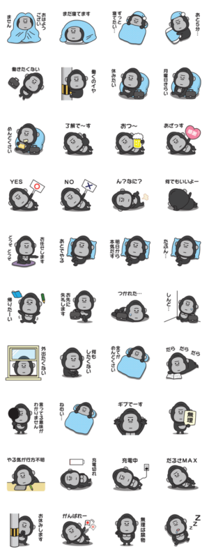 それでもやる気が出ない時に使うゴリラのスタンプです。パン より発売