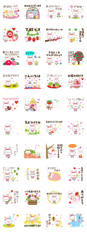 【春の便り】リボンうさちゃん スタンプ画像一覧