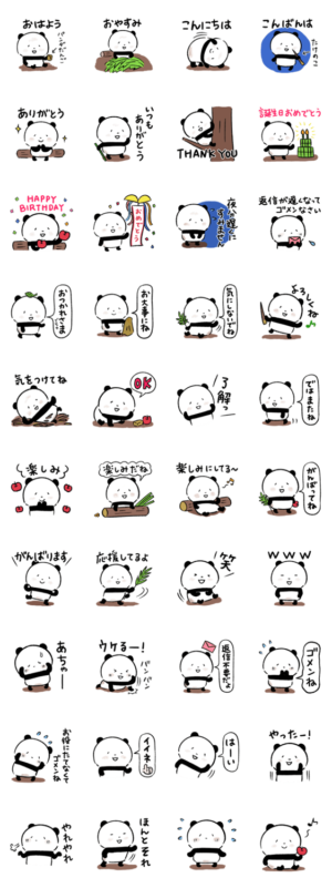 よく使う言葉を集めた「森のパンダ」のスタンプです。パンダのみみみ より発売