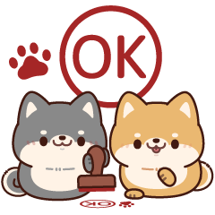 毎日使える挨拶や日常会話が沢山入って使いやすい!ぽってりした柴犬2匹のポップアップスタンプです♪