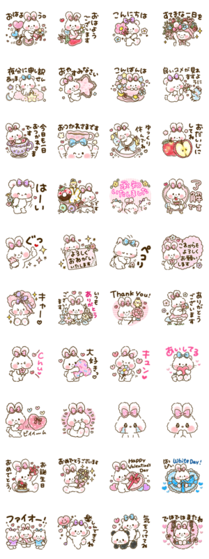 リボンギャルズ(うさぎりぼん/くまりぼん/ねこりぼん)の日常挨拶&気持ちを伝えるスタンプです。兎/猫/熊/リボン/敬語/恋人/カップル/バレンタイン/ホワイトデー/誕生日