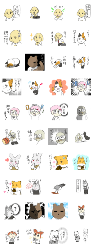 くよくよ悩んでしまう犬と、その同僚たちのスタンプです。Rofu より発売