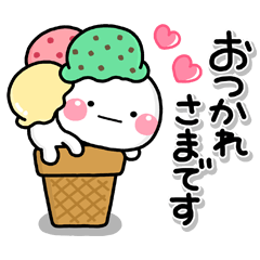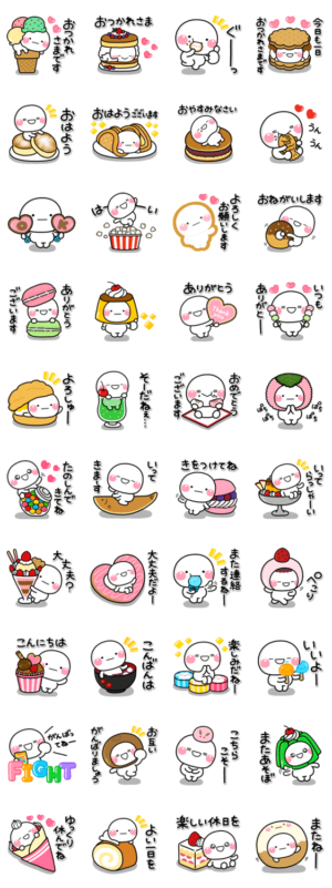 しろまるが大好きな甘いお菓子と一体化!?した基本形スタンプです。ずっと使える内容を揃えましたのでスタンプ初心者の方にもオススメです。【作:いしいともこ】