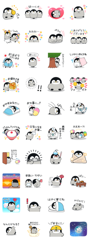 ペンギンの赤ちゃんの病気や体調不良の人にも気づかえる優しいスタンプです♪ 無料配布された【優しい♪心くばりペンギン × LINEドクター】の再リリースが含まれています