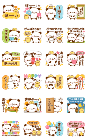パンダ が画面いっぱいに可愛く飛び出す♡日常で毎日使えることばがいっぱいのポップアップスタンプです。ぴよたぬき♡ より発売