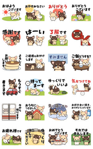 キュートな2匹のチワワの飛び出すスタンプです。季節を問わないので、日々の挨拶やお返事に使いやすい♪