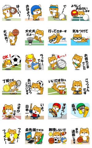豆柴の飛び出すスタンプです。いろいろなスポーツを集めました。ヒサケイプリン より発売