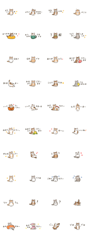 かわいい猫たちの小さいスタンプです。毎日使える表現が満載♪(敬語/挨拶/日常/省スペース/コンパクト/ミニ/シンプル/ねこ)