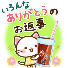 ちょっとした返信やお礼に便利な白ねこちゃんのスタンプです。クローバーやお花が可愛い春〜初夏の季節におすすめです♪