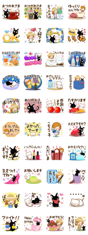 かわいい猫とかわいい女の子の癒される日常スタンプです☆大人かわいい小物がいっぱい♪敬語多め☆よく使う言葉を厳選しました(売上の一部は動物福祉団体に寄付されます)
