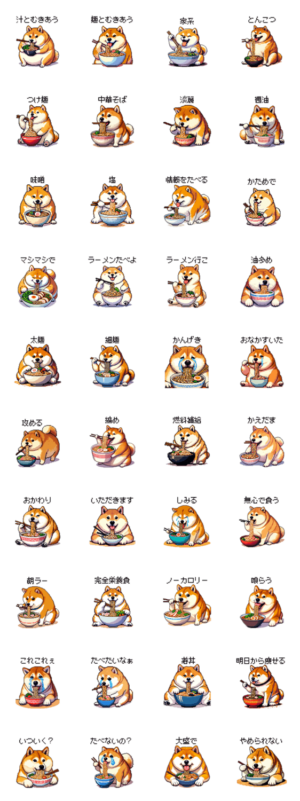 ラーメンを喰らう!太っちょ柴犬 スタンプ画像一覧