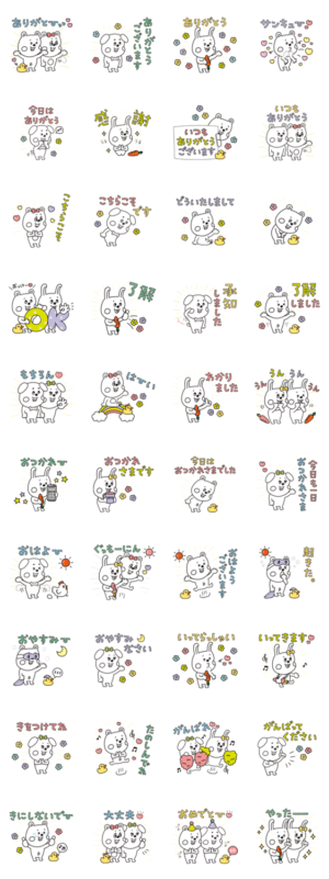 ミディアムサイズのくま登場♪うさぎに、そして犬のキャラも追加♪送る相手によって選べる、使いやすいスタンプです☆