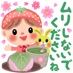 いちごが大好きなかわいい女の子ちっぷる!仲良しのうさ太郎と一緒。 春に使いやすいスタンプです♪めぐみん より発売