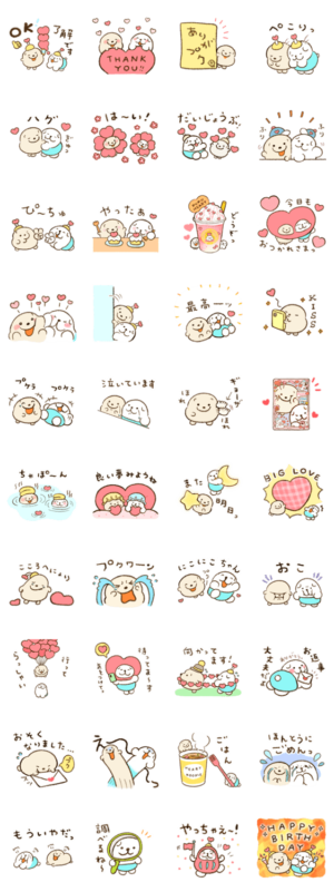 犬界一番のミニミニボディ『犬めだかちゃん』と犬の赤ちゃん『ぷちお』のハートいっぱいなスタンプです。おつかれさまの気持ちを込めて、プクハートをお届けします◎