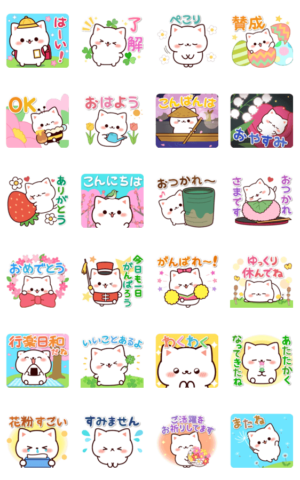 春シーズンに使いやすい、マシュマロみたいな白猫のスタンプです♪DECOR より発売
