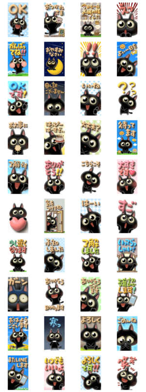 黒猫の黒豆ちゃんがドアップ!!枠からはみだしちゃったりとっても可愛いBIGスタンプです。文字もぷっくり3Dで飛び出て見えます。 ※このスタンプはトークルームで大きく表示されるBIGスタンプです。takopon より発売