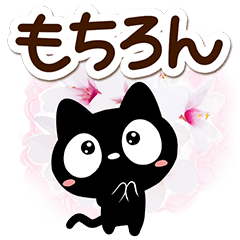 黒猫の桜いっぱいの春らしい『クロネコすたんぷ』。毎日便利な、言葉多めの優しいくろねこスタンプ。【かたこ】丁寧・まるい・ちいさい・楽しい・かわいい・可愛い・花かたこ より発売