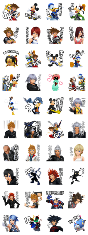 大人気ゲームキングダムハーツのスタンプです。にぎやかなキャラクタースタンプをラインに飾りましょう!
