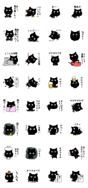 107個目です。ネコ好き集まれ!クロネコだよ!ぼく黒猫だよ!トーク画面の背景黒だと見づらくなるよ!気をつけてね!type-E より発売