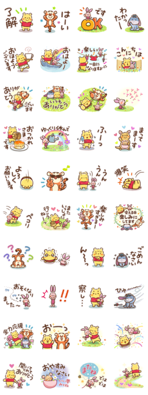 かわいいプーさんとその仲間たちのほんわかとした雰囲気に癒されるスタンプですね。