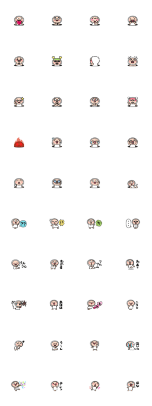 リアクションボタンのように使える超小さいスタンプ。省スペースでトークの邪魔をしません。さりげなく変顔。