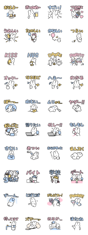 siroiusagichanの日常を描いたスタンプです。寝たり踊ったり泣いたりしながら日々を過ごしています。nsn(ニシナ) より発売
