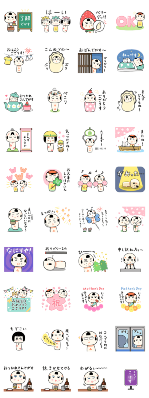 いぎなしなまってる「仙台弁こけし」シリーズ第40弾だっちゃ! 春の日常会話やお花見、入学や卒業祝い、母の日、父の日、誕生日などに使ってけさいん♪jugo より発売
