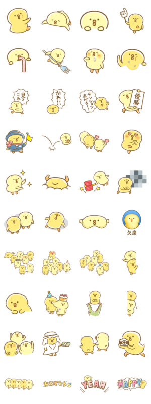 ひよこのような生き物、ぴよこ豆の写真に貼って遊べるスタンプだよ。 LINE Cameraアプリのスタンプも一部復刻!