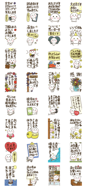 長文で文字打ちが苦手な方にも使いやすく,大きな文字で老眼の方やシニア世代にうれしい,お相手にも読みやすく気持ちを届けてくれるスタンプです!byだいふくまる