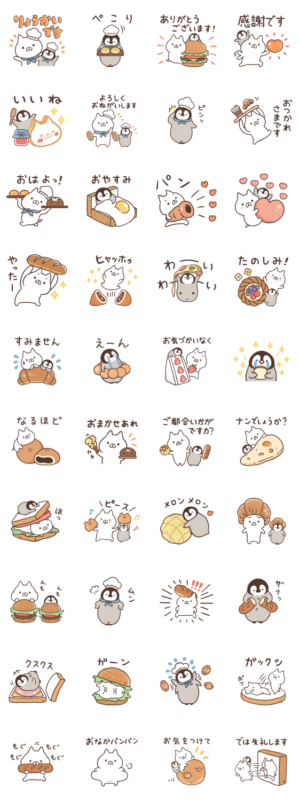 「ねこぺん日和」のねこくんとぺんちゃんのおいしいパンがいっぱいの可愛いスタンプが登場♪