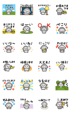 ポジティブなゴリラの日常で使える動くスタンプです。DECOR より発売