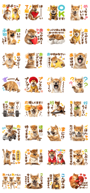 かわいい柴犬大集合♡毎日使う言葉がいっぱい!基本が揃ってとっても使いやすいスタンプセットです、ぴよたぬき♡ より発売