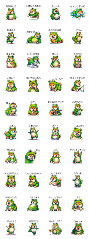 カエルになった太っちょ柴犬 スタンプ画像一覧
