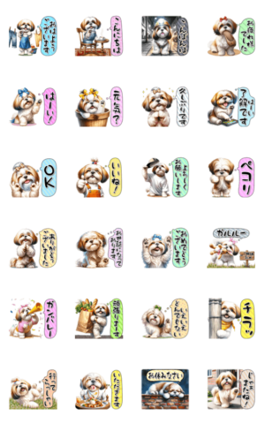 シーズー犬の挨拶スタンプで毎日をもっと楽しく!おはようからおやすみまで、シーズー犬の可愛らしいあいさつや表情で気持ちを伝えませんか?