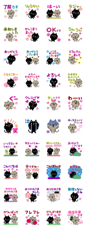 クロネコとしまねこのお花がイッパイな春スタンプです。