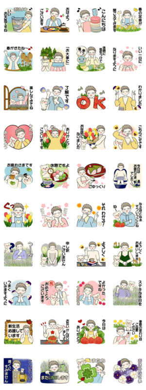 ほんのり優しい色合いの春に優しいスタンプです。使いやすい挨拶や心温まるメッセージ。芽吹く春が元気を運びます。楽しい春を。
