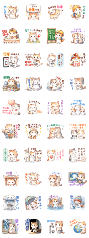 (ネコ・安否確認・無事・避難・地震・震災・台風・大雨・ゲリラ豪雨・浸水・雷・停電・断水・ご自愛・お見舞い)