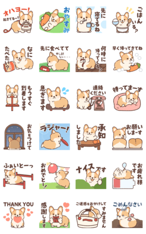 ふわふわ元気いっぱいのコーギーのポップアップスタンプです。家族連絡や親しい友人に手軽に遅れてとっても便利♪