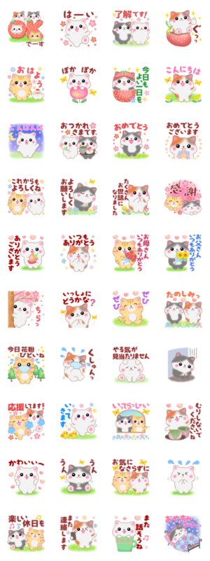 かわいい4匹のベイビーねこさんのスタンプです。春の日常会話にお使いください。めぐみん より発売