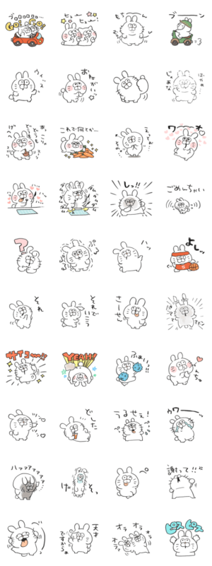 うしゃぎさん第三弾。シュールでかわいいうしゃぎ時々にゃすのスタンプです。ぽち より発売