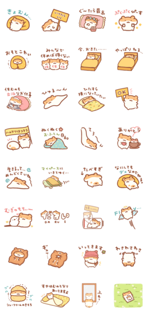 ハムスターすやはむのがんばらないスタンプ第4弾!とにかくだるいとき、めんどくさいとき、人生に疲れたときになどにご利用ください_(:3 」∠)_