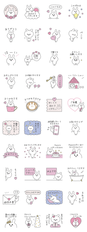 毎日の挨拶から季節の挨拶まで、敬語も入ってとっても使えるうさぎさんスタンプ第一弾です!玲** より発売