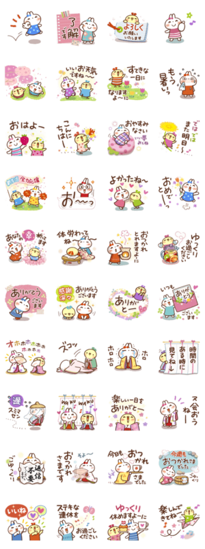 白うさぎさんとインコちゃんの日常スタンプ♪体への気づかい多めです。平安みやび入り♪(春・桜・初夏・暑い)Honobono より発売