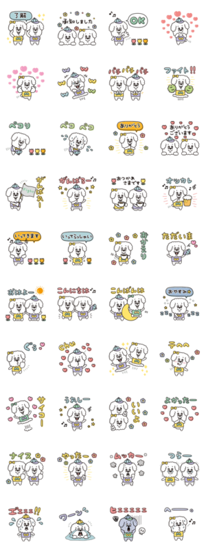 わたがしみないな、もこもこした犬♡WATAとMOCOの基本のスタンプ♪
